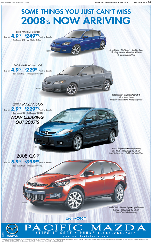 My first long term job as a graphic designer was with Black Press from 2003 until 2008. In my time I worked in several capacities there and learned a lot from this experience. My main duty was building Display Advertising and preparing files for press. In addition to that job, I ended up working with the Sales team on many initiatives including helping to shape the Automotive Section and working on many key marketing materials in my tenure.