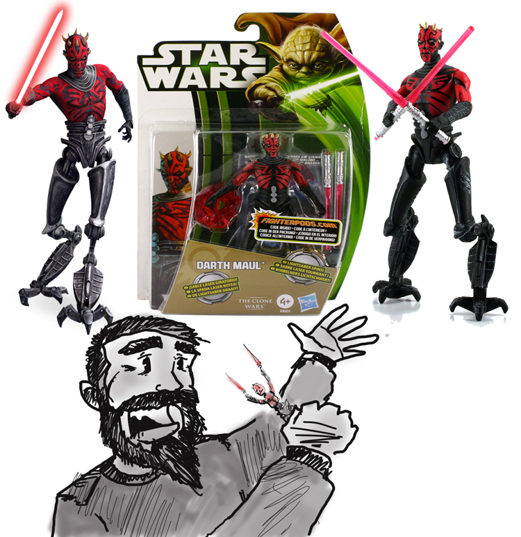 So why the mechanical grass hopper legs? This design was originally sourced from conceptual designs and a short story from a graphic novel of EU stories called Star Wars: Visionaries. Expanded upon from these ideas, the Clone Wars series has managed to take this idea and have resurrected Maul and progressed him in the show. This expansion of his is actually pretty awesome and the toy is pretty fun representation of even if its physical design isn’t as strong as it could of been, its pretty close to the show and source material.