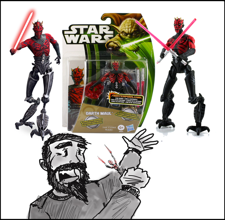 So in a bit of retail turn-about, usually I am lusting over exclusives sold in the States only but turns out, in this case CANADA WINS! See these figures because of the suspension of the 3-D re-release, the waning of the Clone Wars ratings and a desire to change focus of the line, Darth Maul, the Clone Wars and this packaging are only going to be released in Canada and Europe. Strange but with the marketing of Star Wars now moving toward the future and no 3D rerelease, it becomes a neat little side-note to the collecting of this guy.